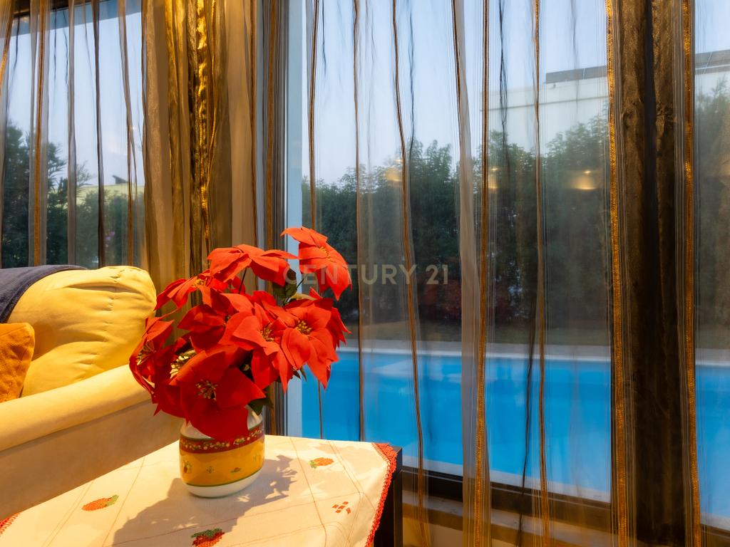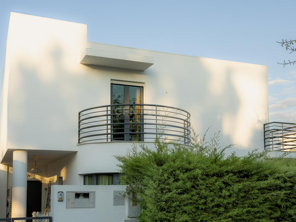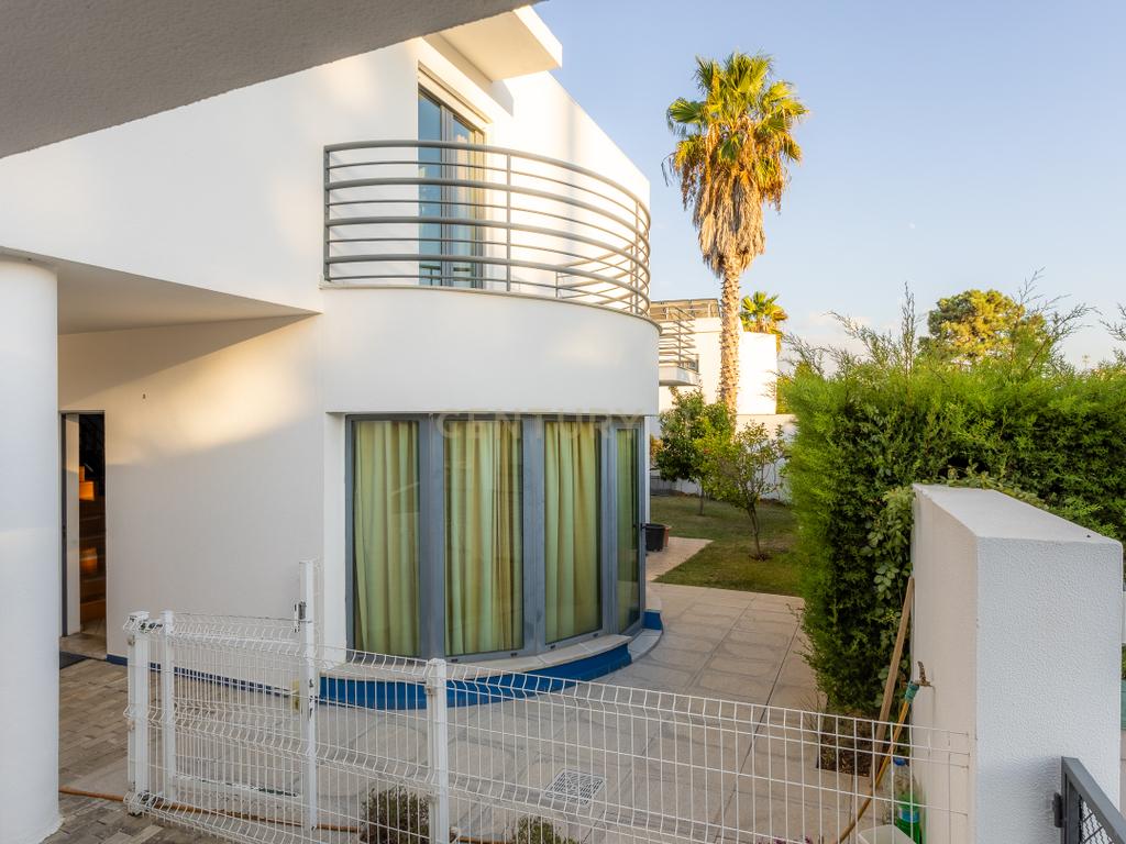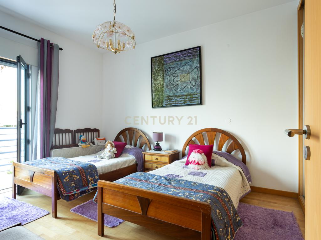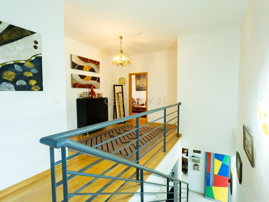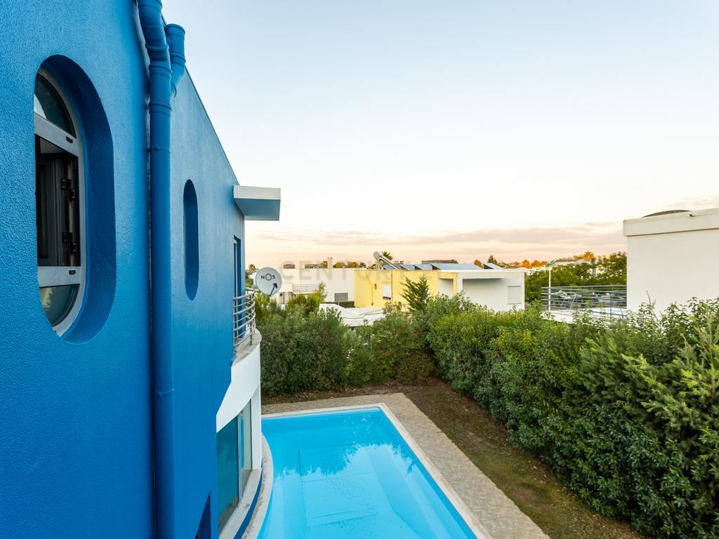 Rés-do-chão com amplo open space com 80 m², integrando sala de estar e de refeições, cozinha equipada, casa de banho social e acesso direto ao jardim e piscina através da sala, o Primeiro andar têm três suites, cada uma com casa de banho privativa e banheira, duas suites com acesso direto a varandas privativas e uma suite com acesso a terraço privativo, hall com acesso a varanda .